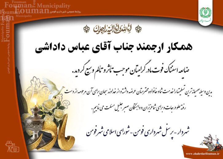 با نهایت تاسف درگذشت مادر گرامیتان را به شما و خانواده محترمتان تسلیت عرض نموده ، از خداوند بزرگ برای آن مرحومه طلب رحمت و مغفرت و برای بازماندگان صبری جمیل مسئلت می نماییم.