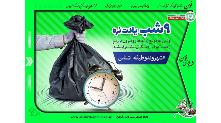 شهرداری فومن, مدیریت پسماند شهروند قانون مدار شهروند قانون مدار همشهریان عزیز برای کم… روابط عمومی شهرداری فومن۷ مرداد ۱۴۰۴